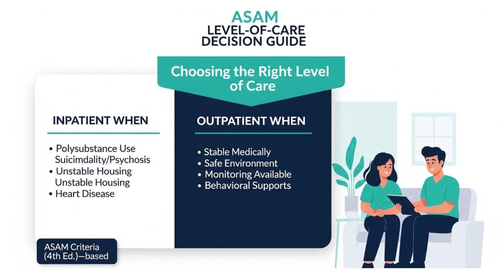 Not everyone needs inpatient detox. The American Society of Addiction Medicine Criteria, Fourth Edition, provides a structured, dimension based framework to match individuals with the appropriate level of care based on withdrawal risk, biomedical and psychiatric comorbidities, relapse potential, and recovery environment.